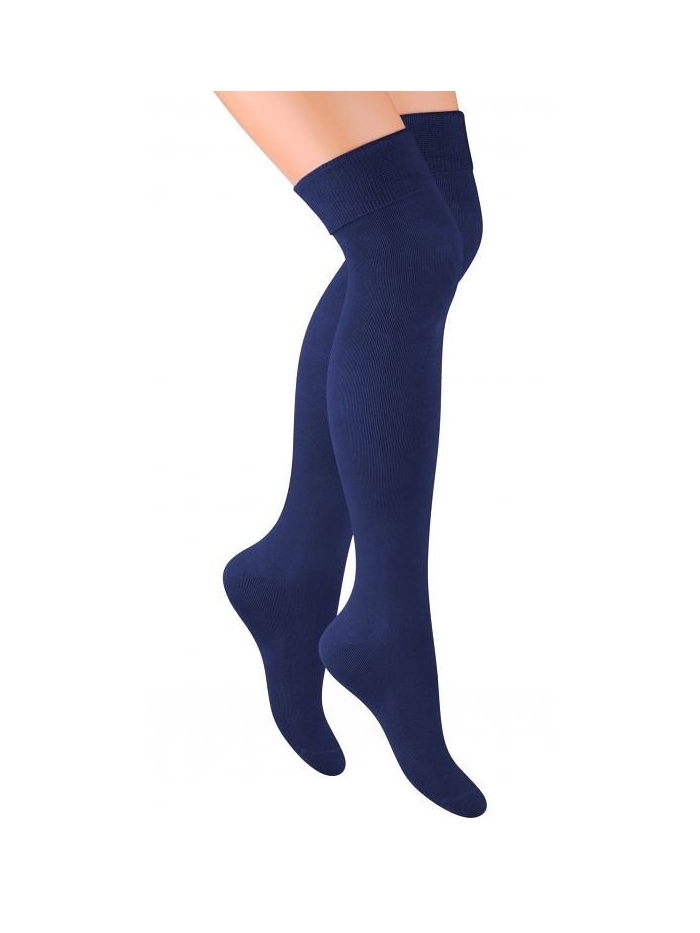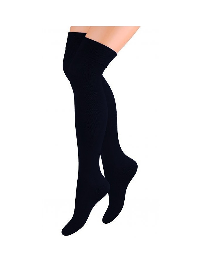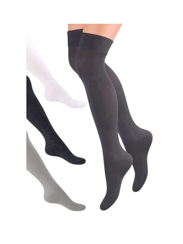 Dámské nadkolenky ušité z 75% bavlny a z elastických vláken. Mají nestahující lem.