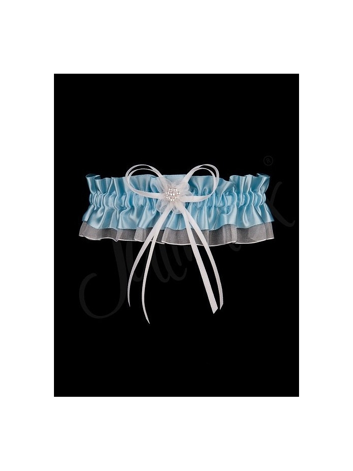 Podvazek je ozdobený mašličkou a květinkou z perliček.