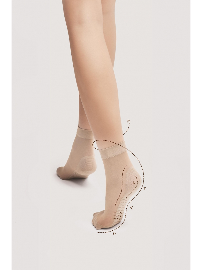 Dámské ponožky s preventivním efektem masáže chodidel a s lemem, který netlačí.