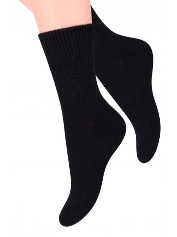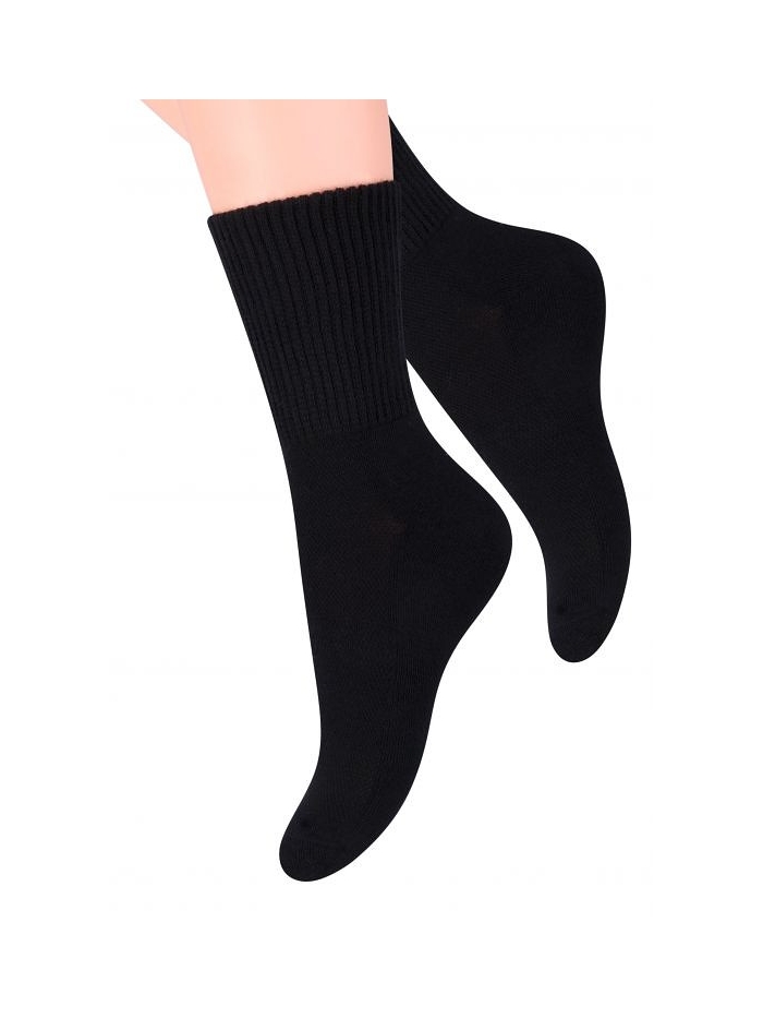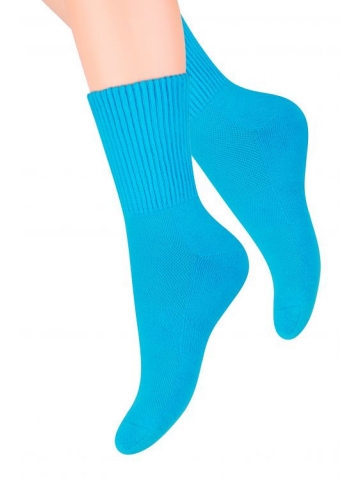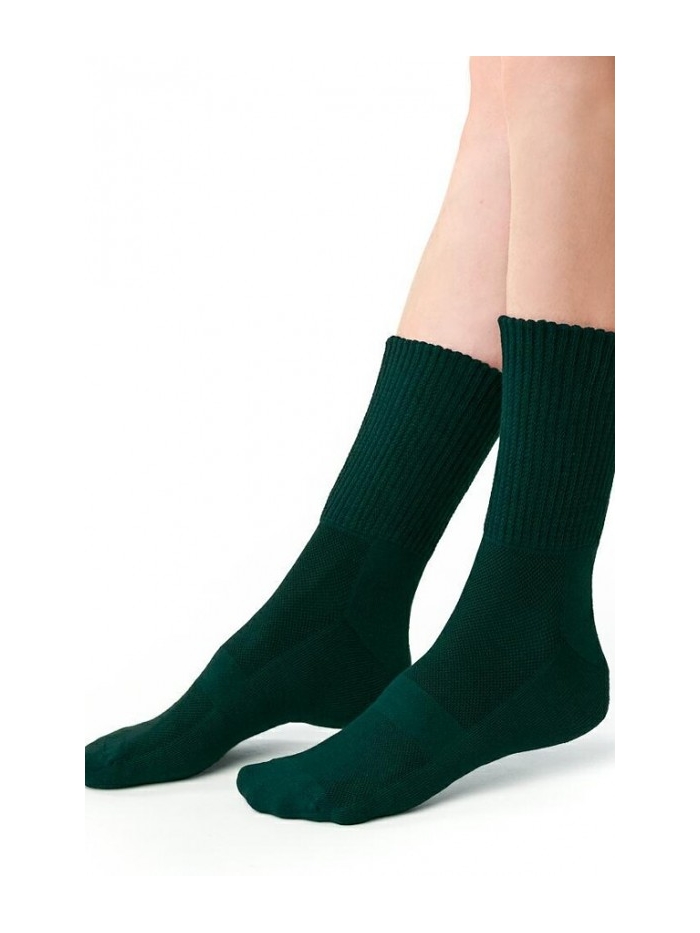 Sportovní dámské ponožky s fortté na chodidle. Ušité jsou z kvalitní bavlny (68%). Pěkně přiléhají, mají nestahující lem a ploché švy. Jsou velice pohodlné.
