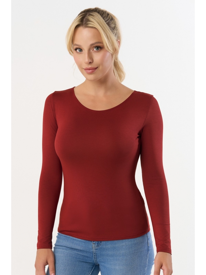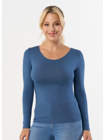 Dámské tričko z viskózy s přídavkem elastanu. Dokonale se přizpůsobuje tělu. Polokulatý výstřih. Dlouhý rukáv.