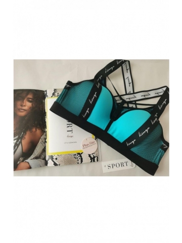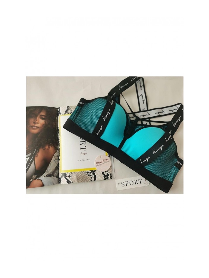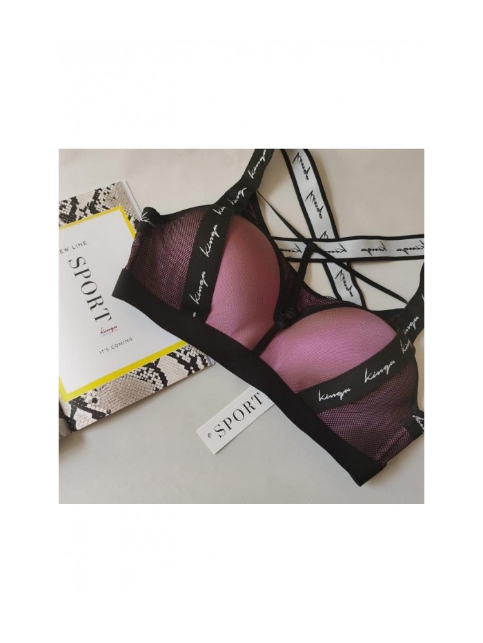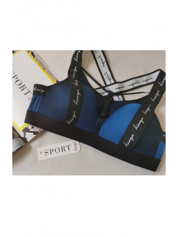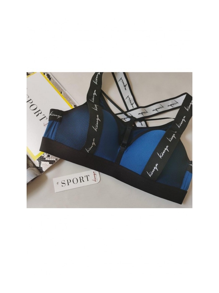 Dámská podprsenka se sportovním střihem. Košíčky modelu jsou lehce vyztužené. Ramínka ze široké gumy se na zádech křižují. Zadní část modelu se zapíná háčky. Výstřih podprsenky je ozdobený pružnými páskami.
