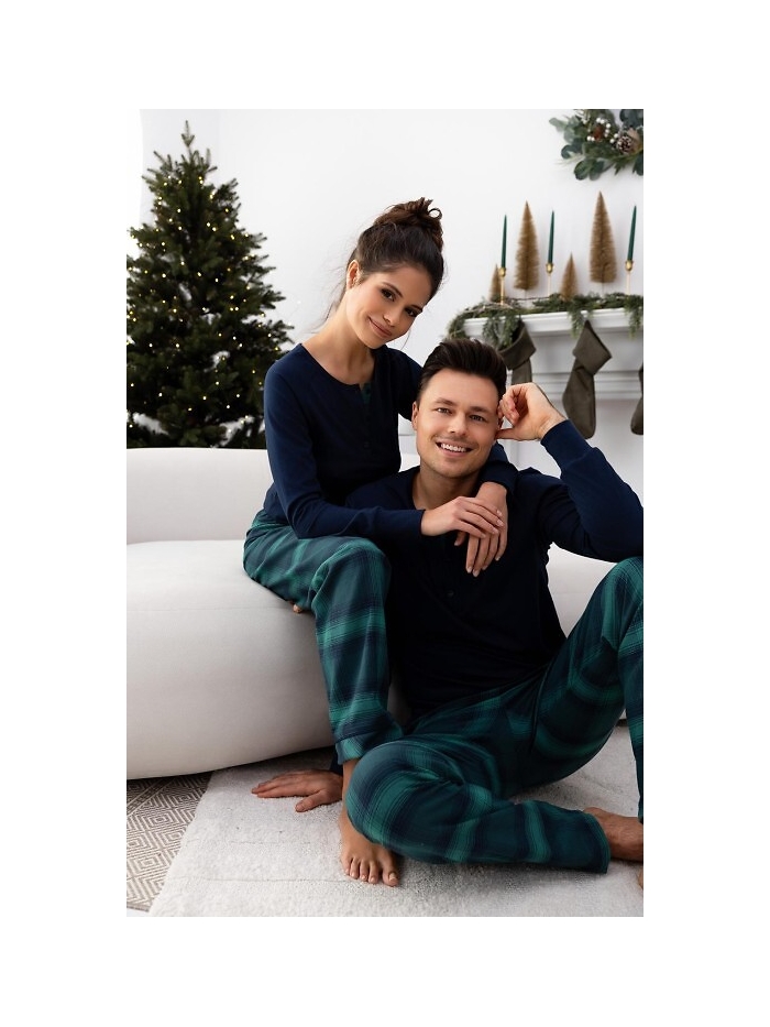 součástí jsou dlouhé zelené kalhoty s kostkovaným vzorem