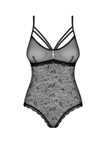 výstřih zdobený elastickými pásky a lesklým šperkovým prvkem