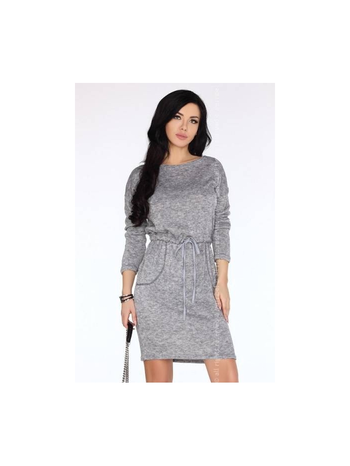 Dámské šaty s dlouhými rukávy. Šaty jsou na zavazování v pase.