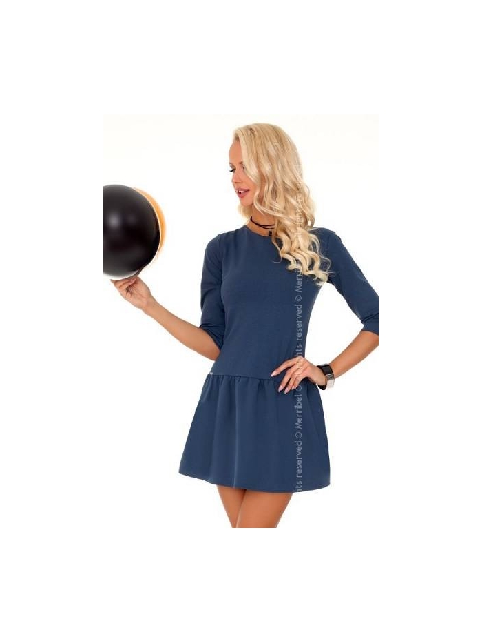 Dámské mini šaty s 3/4 rukávy. Kulatý výstřih, dole nabíraná.