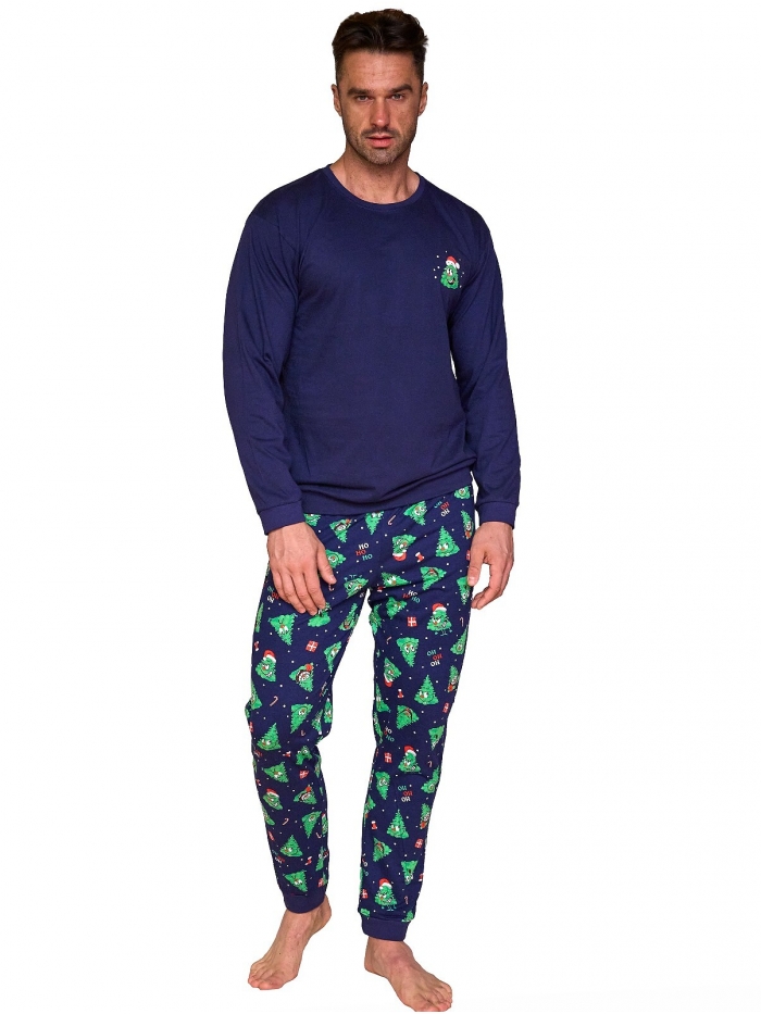 Pánské pyžamo. Vsoce kvalitní bavlna s vánočními motivy. Tričko s dlouhým rukávem. Kulatý výstřih, dlouhé kalhoty, v pase pružná guma. Manžety, spodní lem trička a nohavice zakončené pružným lemem. Baleno v dárkové krabičce.