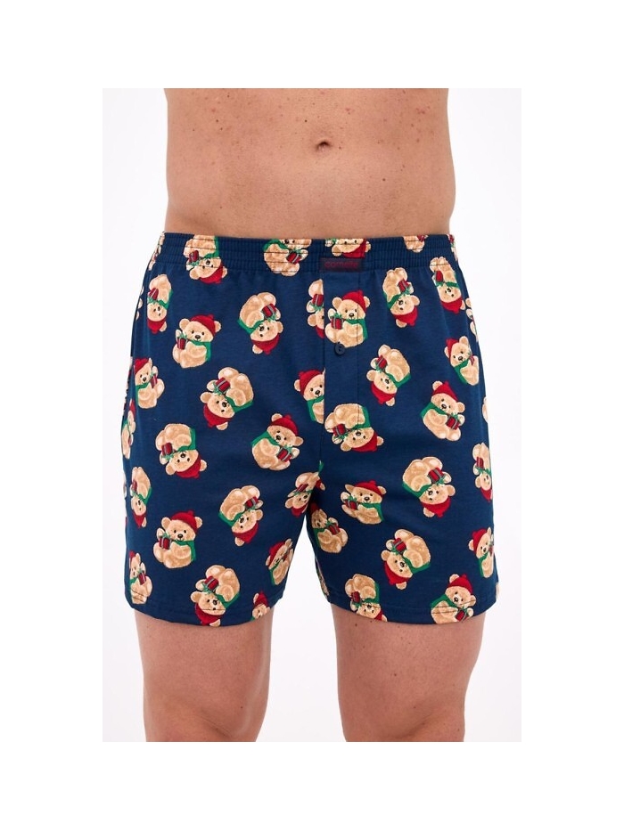 Volné pánské boxerky – tmavě modré s vánočními medvídky