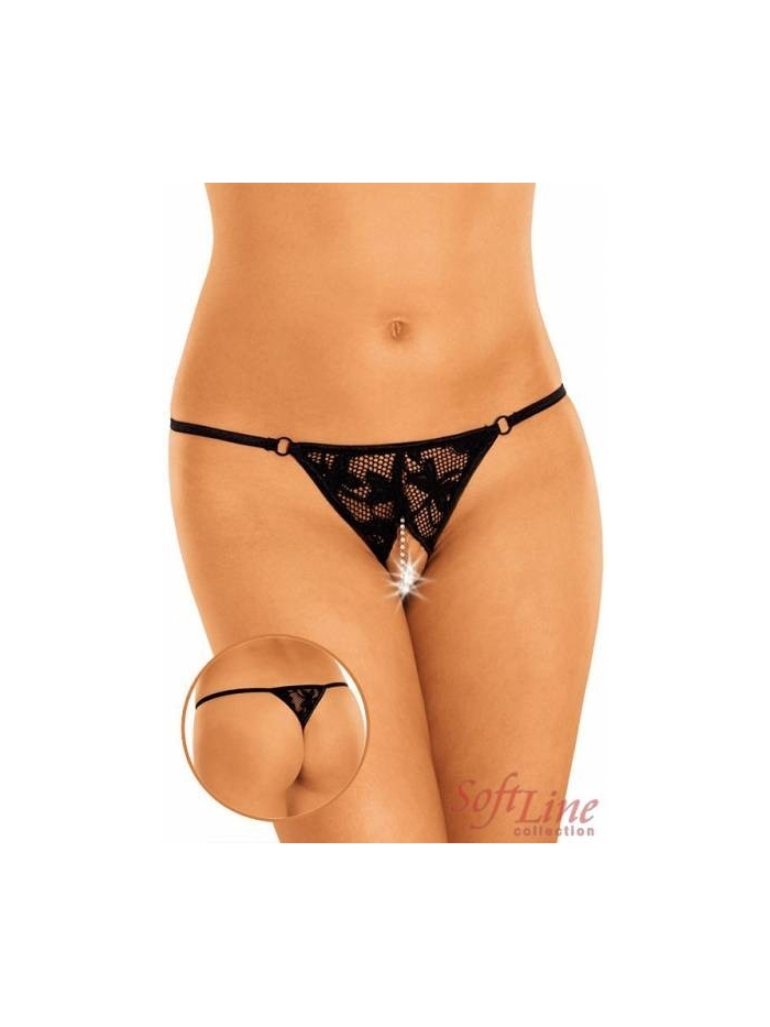Otevřené tanga z jemné krajky zdobené třpytkami.