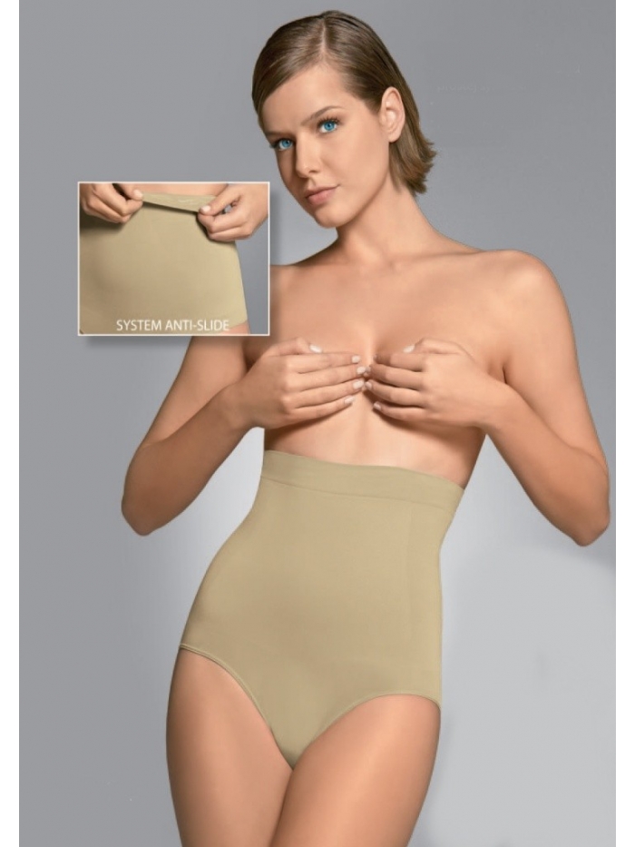 Klasiky s vysokým pasem zplošťují břicho, zmenšují pas, modelují a zvedají hýždě. Jsou bezešvé a hladké, proto nebudou vidět ani pod oblečením. V horní části na rubové straně byl použit silikon, který zabraňuje sesouvání.