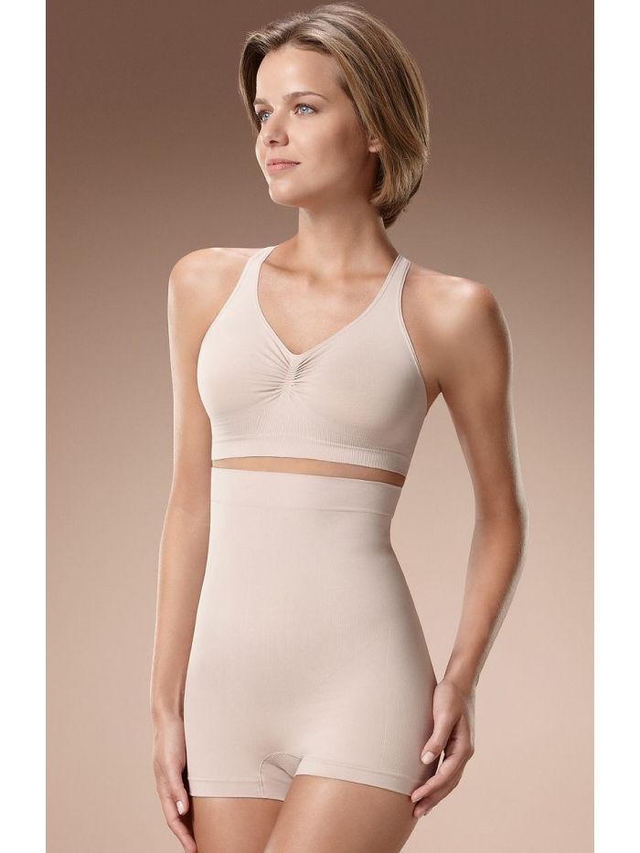 Boxerky s vysokým pasem zplošťují břicho, zmenšují pas, modelují a zvedají hýždě. Jsou bezešvé a hladké, proto nebudou vidět ani pod oblečením. V horní části na rubové straně byl použit silikon, který zabraňuje sesouvání.