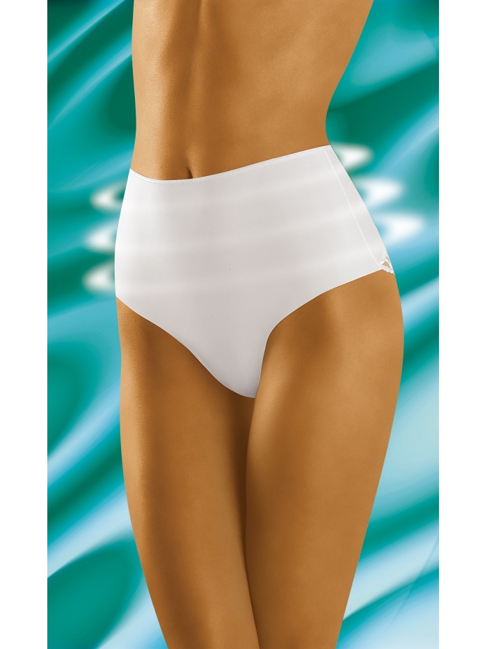 Dámské tvarovací kalhotky - obepínají břicho a zvýrazňují linii pasu. Přední část nohavic je střižená laserem. Zadní strana je ozdobená ažurovou krajkou.