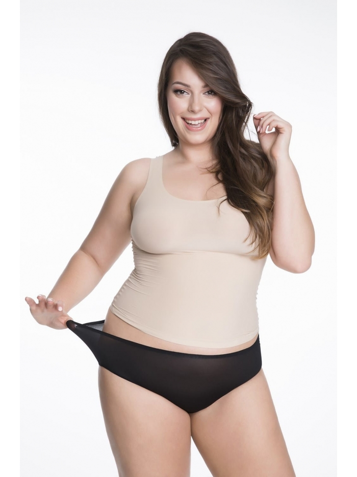 Dámské kalhotky klasického střihu jsou vyrobené z neobyčejně pružné tkaniny, která se krásně přizpůsobuje postavě. Kalhotky se roztahují a rostou spolu s rostoucím bříškem. Neobyčejně měkká a na dotyk sametová tkanina je spojením polyamidu a elastanu se speciálním způsobem tkaní, který se vyznačuje vysokým stupněm pružnosti. Tkanina je tenká a lehká, a proto je prodyšná a rychle usychá. Model bez švů a prošití eliminuje riziko podráždění kůže a nepříjemného tlaku. Díky své pružnosti se kalhotky osvědčí i po porodu. V intimní části modelu je bavlněná vložka.