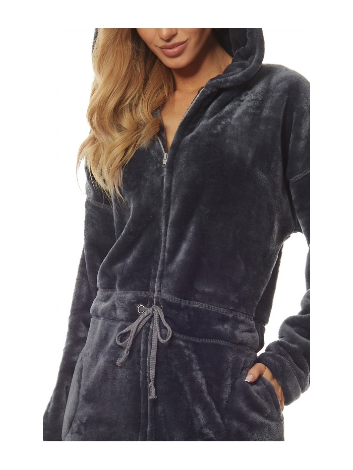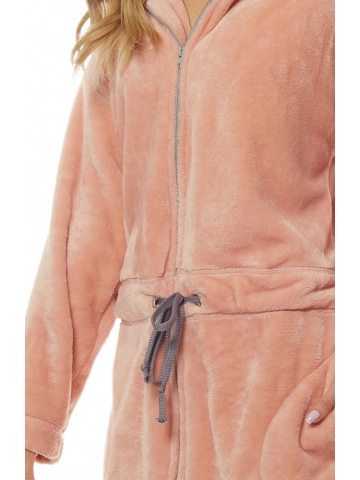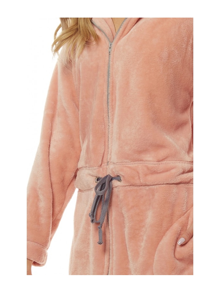 Župan je vyrobený z příjemné polarové tkaniny a zapíná se zipem. V pase modelu jsou šňůrky pro nastavení obvodu. Model má na bocích pohodlné kapsy.